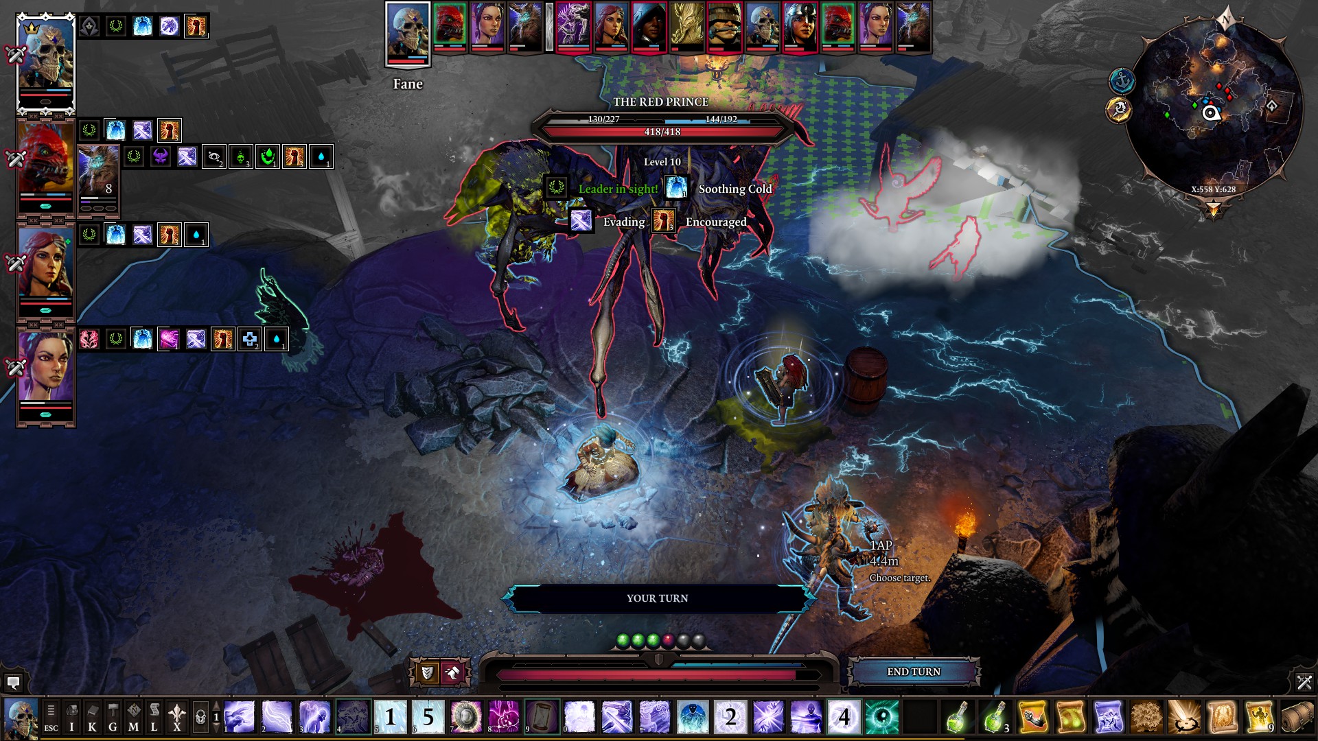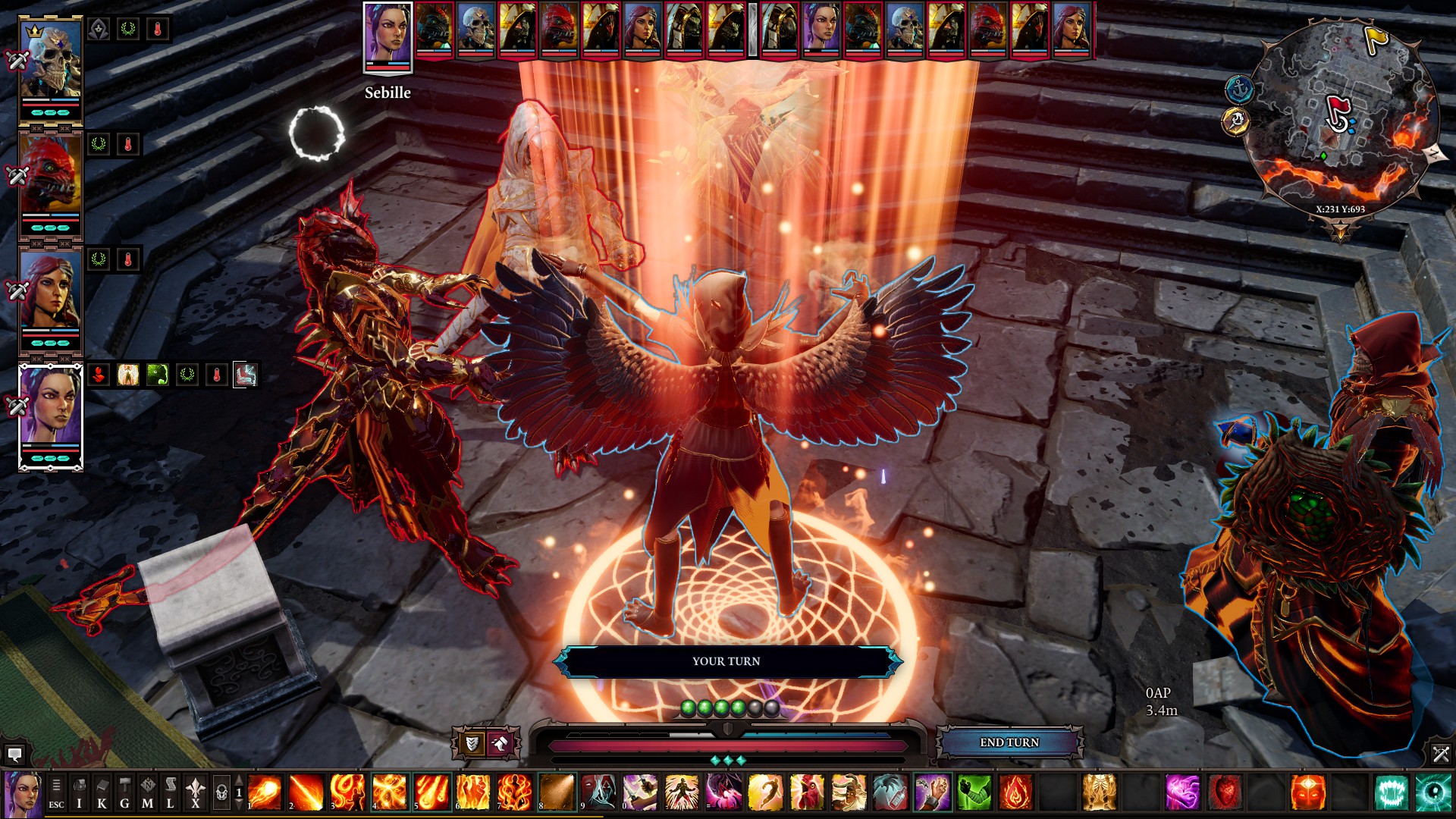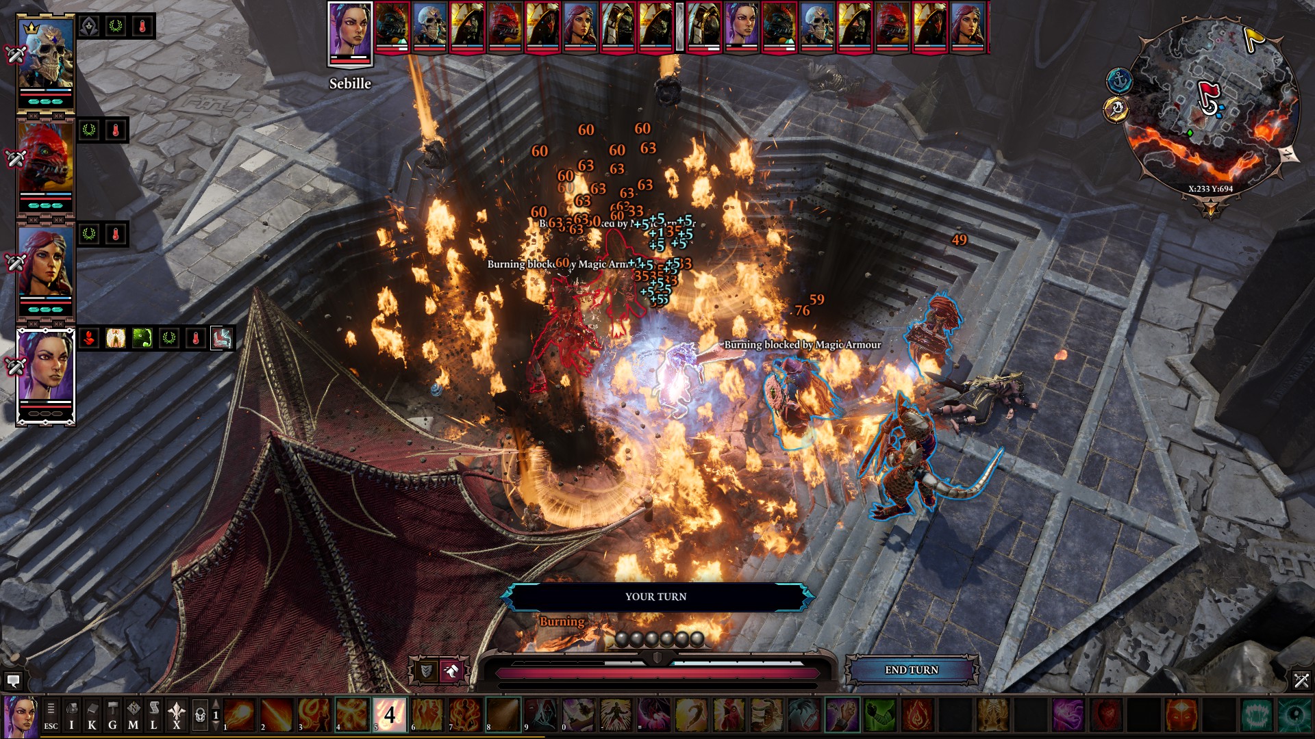 It’s really fun though. It’s like the developers looked at every surface you can make or that exists in the environment and thought – what would happen if you did ‘this’ to it ‘in real life’? If you light a flame on top of a puddle of oil, obviously the oil will catch on fire and fuck everything up, but just being in a dummy viscous substance like that would do something right? Boom, new status effect: ‘Slowed’. And being slowed is arguably worse that being lit on fire (in the game). When you’re on fire you’re on fire – like whatever, you just take damage. But when you’re slowed? Your movement speed is reduced to like 50% meaning you can’t do anything if you’re in the wrong spot, especially if you’re a melee unit. It is not fun watching one of your party members take their entire turn just to move two feet. It’s fun because it feels like there’s an infinite number of combinations of things you can do in an encounter – and there kind of are honestly. Whenever there’s an encounter, it feels like you get to solve a puzzle where you look at all of your spells, what your opponent is weak against, if they have more magic armor or physical armor, what the surrounding environment is like, where is the best position to be in, how many enemies are there, how close together are they, who should you go for first, I mean there are so many things that I could list that I could go on forever. It makes it so that even the most ridiculous unfair encounters where there’s a boss that’s three levels higher than you and has 5 adds that all repeatedly give it a fucking stacking 60% damage buff when he already has enough damage to one shot you on his own, feel like there has to be some combination of skills that you can use to win. And usually there is.